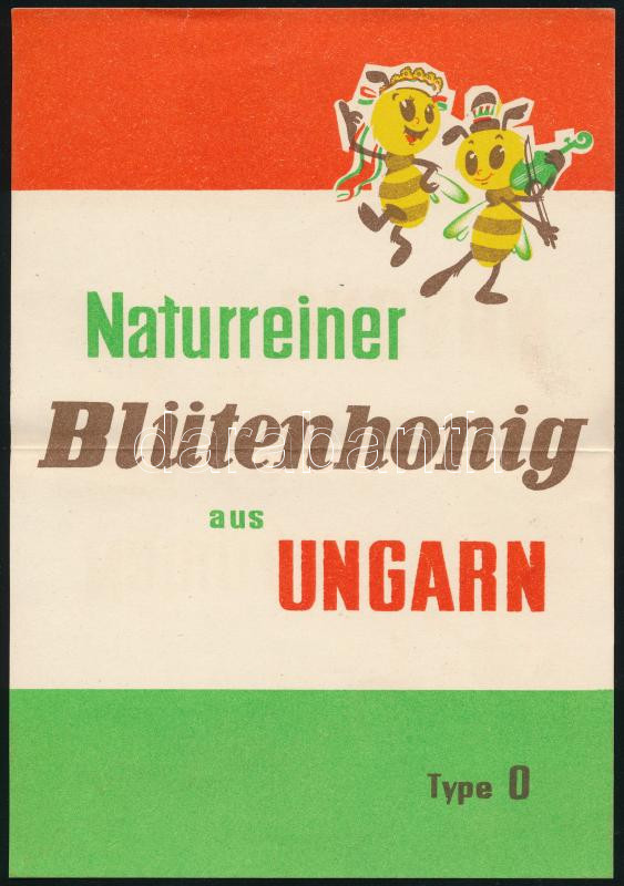 Leírás: Naturreiner Blütenhonig aus Ungarn / Magyar méz, német nyelvű reklám kisplakát, középen hajtott, 20,5x14 cm