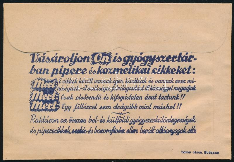 Leírás: Szöllősi Jenő "Városház" gyógyszertára (Makó, Főtér) receptboríték