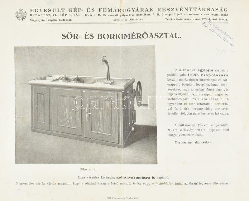 cca 1930 2 féle Sör- Borkimérő asztalt bemutató ábra / leírás - Egyesü... https://www.darabanth.com/hu/449-Gyorsarveres/449.0/Mutargy-papirregiseg-egyeb/Reklam~500024/cca-1930-2-fele-Sor-Borkimero-asztalt-bemutato-abra-leiras-Egyesult-Gep-es-Femaru~II2981001