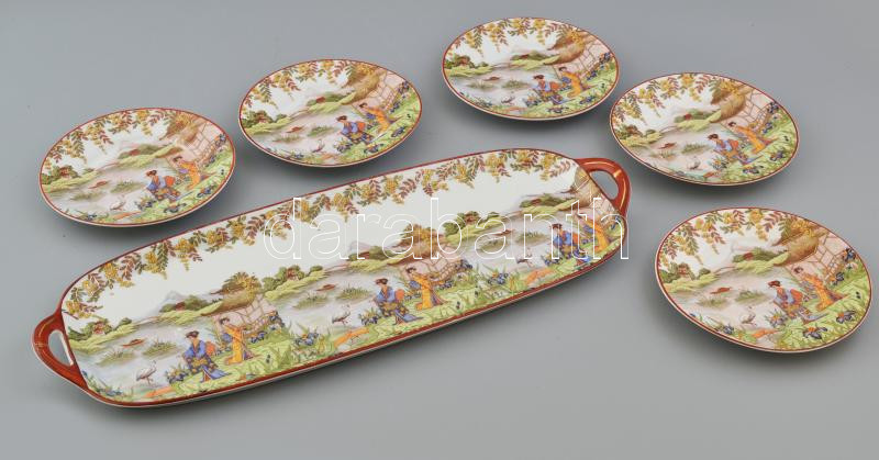 Leírás: Japán süteményes készlet, 5 személyes, hibátlan, jelzett, d: 15 cm, 43x16cm