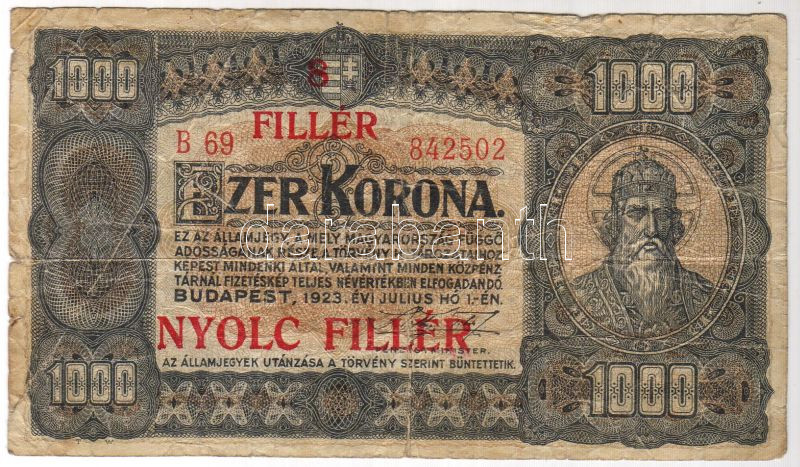 1923. 1000K 8f fny-sal, a felülnyomás igen erősen felfelé, illetve bal... https://www.darabanth.com/hu/45-Gyorsarveres/45.0/Numizmatika/NUMIZMATIKA-NUMISMATICS~202/1923-1000K-8f-fny-sal-a-felulnyomas-igen-erosen-felfele-illetve-balra-tolodott-TIII-R~II90028