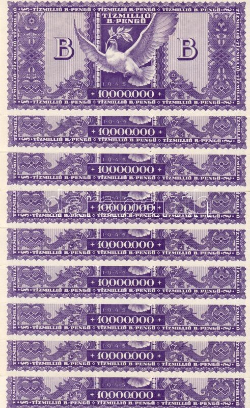 1946. 10.000.000B.-pengő (9x) ugyanolyan lemezhibával "sarkantyús L" T... https://www.darabanth.com/hu/45-Gyorsarveres/45.0/Numizmatika/NUMIZMATIKA-NUMISMATICS~202/1946-10000000B-pengo-9x-ugyanolyan-lemezhibaval-sarkantyus-L-TI~II87792