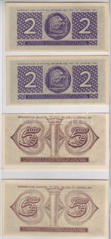 Leírás: Görögország 1941. 2Dr (2x) + 5Dr (2x) benne vágási hibák, kevés ugrású sorszámok, illesztőkereszt! T:I