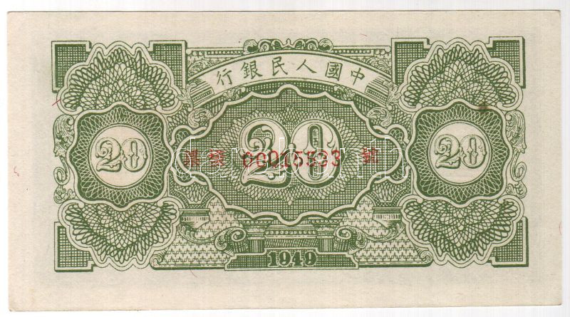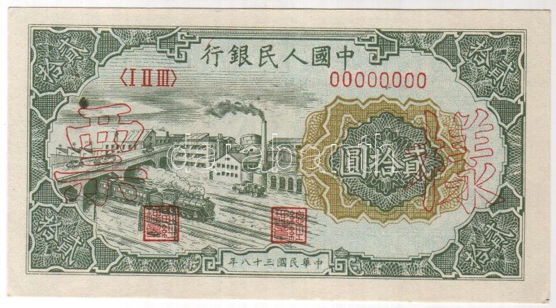 Leírás: Kína/Népköztársaság 1949. 20Y "Specimen" (Minta) 00-ás sorozat T:I