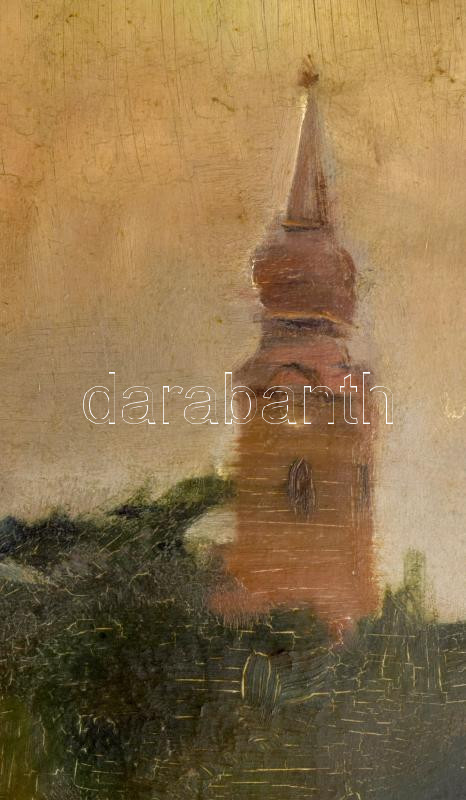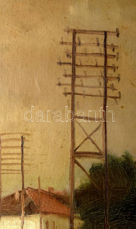 Leírás: Szüle Péter (1886-1944): Szolnoki részlet, 1923. Olaj, vászon, jelzett. Javított. Dekoratív fakeretben, 60×80 cm.