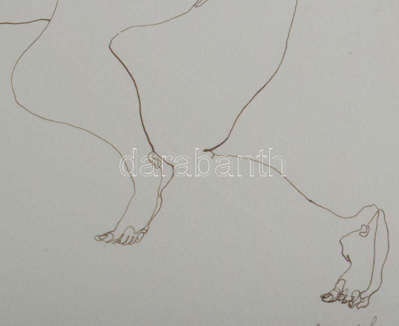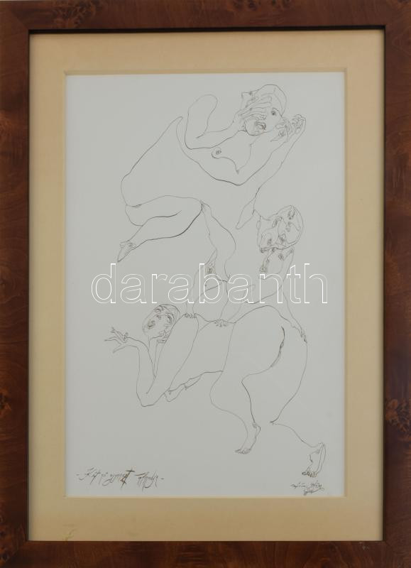 Leírás: Lévai Ádám (1967-): Két nő ugyanazt álmodja, 2005. Tus, papír, jelzett, üvegezett fakeretben 42x28 cm