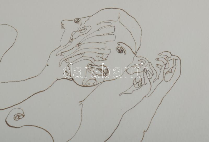 Lévai Ádám (1967-): Két nő ugyanazt álmodja, 2005. Tus, papír, jelzett... https://www.darabanth.com/hu/45-Nagyaukcio/45.1/Festmenyek-es-grafikak/Kortars-festmenyek-es-grafikak~18998/Levai-Adam-1967-Ket-no-ugyanazt-almodja-2005-Tus-papir-jelzett-uvegezett-fakeretben~II3446667