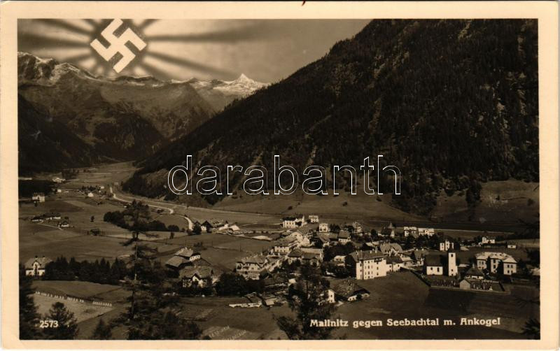 1938 Mallnitz (Kärnten), Mallnitz gegen Seebachtal m. Ankogel / genera... https://www.darabanth.com/hu/45-Nagyaukcio/45.1/Kepeslapok/Ausztria~18773/1938-Mallnitz-Karnten-Mallnitz-gegen-Seebachtal-m-Ankogel-general-view-Nazi-swastika-montage~II3455323