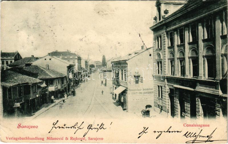1901 Sarajevo, Cemalusagasse / street view, shop of Celjak, A. Zeitler... https://www.darabanth.com/hu/45-Nagyaukcio/45.1/Kepeslapok/Bosznia-Hercegovina~18776/1901-Sarajevo-Cemalusagasse-street-view-shop-of-Celjak-A-Zeitler-Milanovic-Rajkovic-plus~II3387753