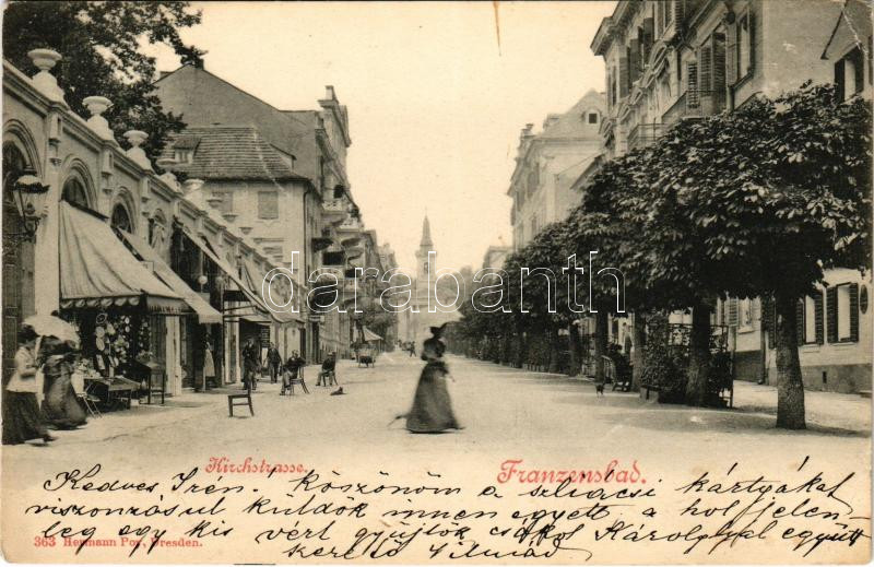 1900 Frantiskovy Lázne, Franzensbad; Kirchstrasse / street view, churc... https://www.darabanth.com/hu/45-Nagyaukcio/45.1/Kepeslapok/Cseh-Koztarsasag~18778/1900-Frantiskovy-Lazne-Franzensbad-Kirchstrasse-street-view-church-shops-EB~II3414079