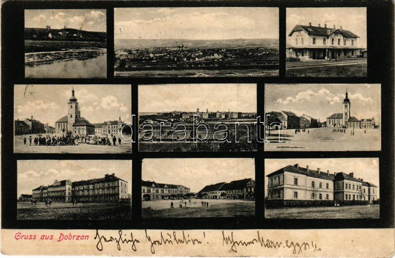 1906 Dobrany, Dobrzan; multi-view postcard with railway station (r) https://www.darabanth.com/hu/45-Nagyaukcio/45.1/Kepeslapok/Cseh-Koztarsasag~18778/1906-Dobrany-Dobrzan-multi-view-postcard-with-railway-station-r~II3413784