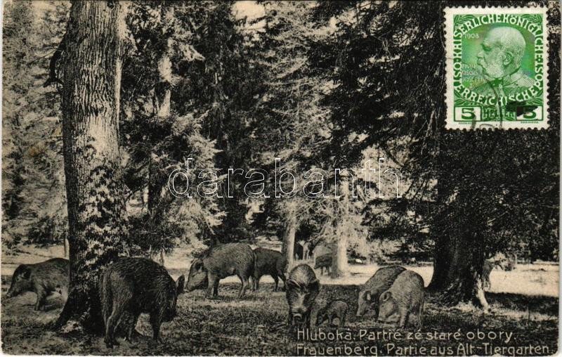 Leírás: 1912 Hluboká nad Vltavou, Frauenberg; Partie ze staré obory / Partie aus Alt-Tiergarten / old zoo with wild boars (EK)