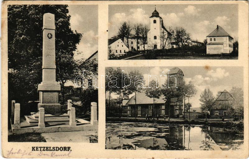 Leírás: 1925 Koclírov, Ketzelsdorf; church, military monument, pond (fa)