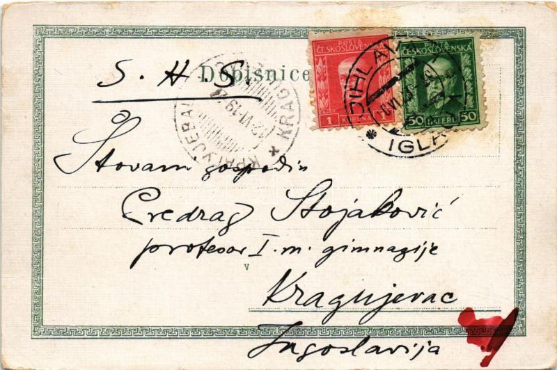Leírás: Jihlava, Iglau; railway bridge with locomotive, train. Art Nouveau frame (worn corners)