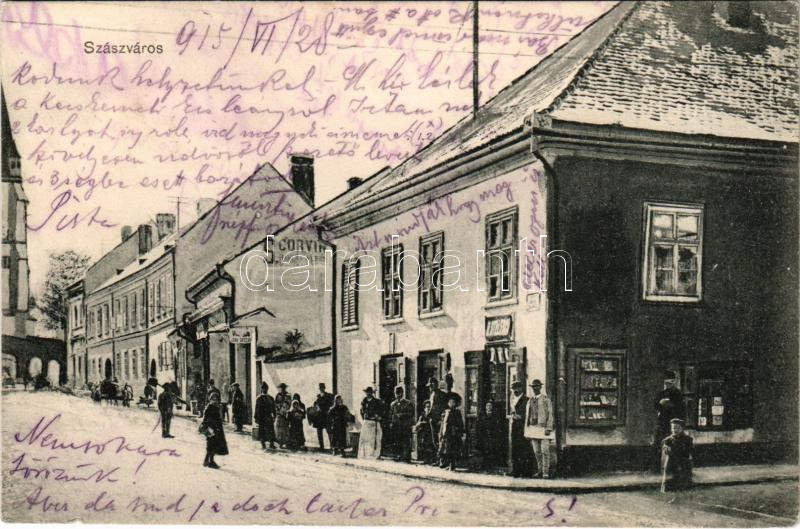 Leírás: 1915 Szászváros, Broos, Orastie; utca, B. Stelescu üzlete. Adler fényirda / street view, shops (gyűrődés / crease)