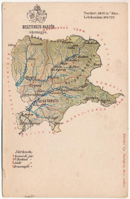 Beszterce-Naszód vármegye térképe. Kiadja Károlyi Gy. / Map of Bistrit... https://www.darabanth.com/hu/45-Nagyaukcio/45.1/Kepeslapok/Erdely~18764/Beszterce-Naszod-varmegye-terkepe-Kiadja-Karolyi-Gy-Map-of-Bistrita-Nasaud-county-szakada~II3448015