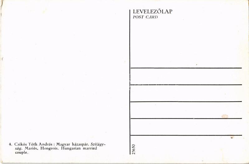 Leírás: Magyar házaspár, Szilágyság. Ifj. Pataki Mihály kiadása / Hungarian folklore from Salaj, Transylvania s: Csikós Tóth András (EK)