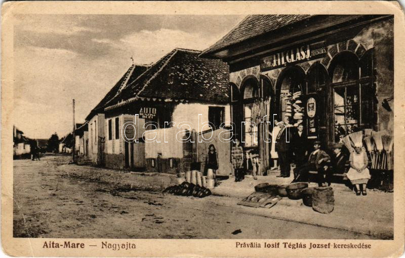 Nagyajta, Aita Mare; Téglás József kereskedése / Pravalia Iosif Téglás... https://www.darabanth.com/hu/45-Nagyaukcio/45.1/Kepeslapok/Erdely~18764/Nagyajta-Aita-Mare-Teglas-Jozsef-kereskedese-Pravalia-Iosif-Teglas-Auto-Benzina-Olei-~II3450823
