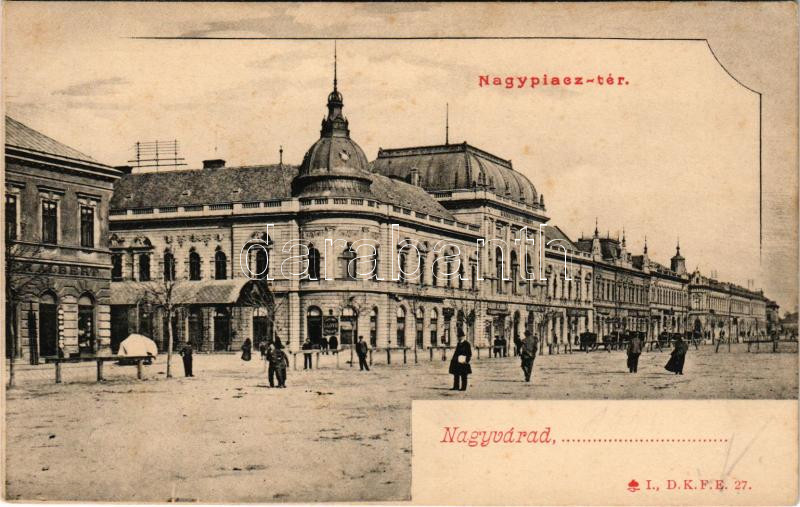Leírás: Nagyvárad, Oradea; Nagypiac tér, Lloyd kávéház, Nádor üzlete. I. D.K.F.E. 27. / market square, café, shops (fl)