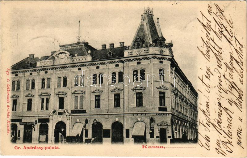 1902 Kassa, Kosice; Gr. Andrássy palota és kávéház, Migaly Sándor üzle... https://www.darabanth.com/hu/45-Nagyaukcio/45.1/Kepeslapok/Felvidek~18765/1902-Kassa-Kosice-Gr-Andrassy-palota-es-kavehaz-Migaly-Sandor-uzlete-Kiadja-az-Egy-es-~II3437963