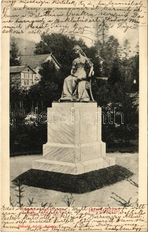 1903 Bártfafürdő, Bardejovské Kúpele, Bardiov, Bardejov; Erzsébet királyné (Sissi) szobor, Donáth Gyula műve. Divald Adolf kiadása (Bártfa) / statue of Empress Elisabeth (Sisi) of Austria (EK)