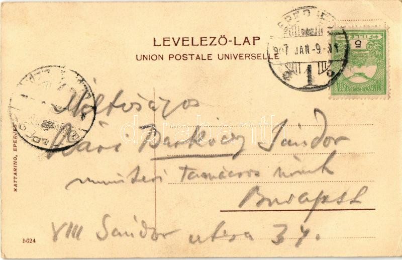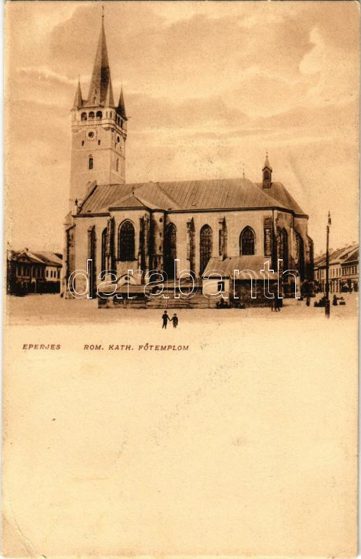 1907 Eperjes, Presov; Római katolikus főtemplom, piac. Báró Barkóczy Sándor (1857-1925) miniszteri tanácsos, császári és királyi kamarásnak címezve. Kattarino kiadása / Catholic church, market (EB)