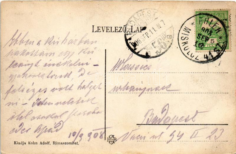 Leírás: 1908 Csíz, Csízfürdő, Cíz Kúpele; Orvos lak. Kohn Adolf kiadása / villa + "FÜLEK - MISKOLCZ 41. SZ." (EK)