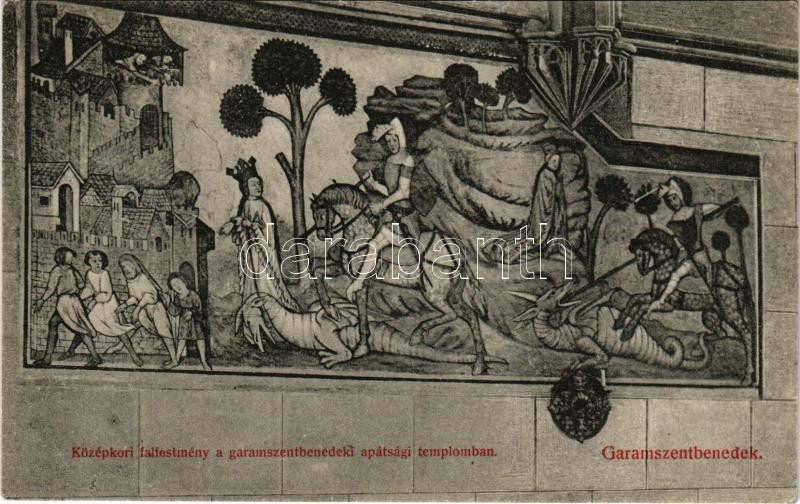 1917 Garamszentbenedek, Sankt Benedikt, Sväty Benadik, Hronsky Benadik; Középkori falfestmény az apátsági templomban / Medieval wall painting in the abbey church