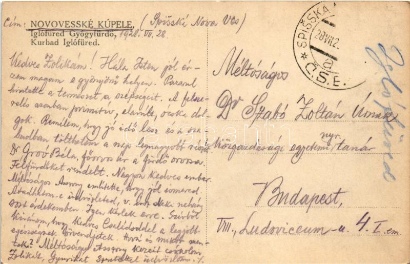1928 Iglófüred, Bad Zipser Neudorf, Spisská Nová Ves Kupele, Novovessk... https://www.darabanth.com/hu/45-Nagyaukcio/45.1/Kepeslapok/Felvidek~18765/1928-Iglofured-Bad-Zipser-Neudorf-Spisska-Nova-Ves-Kupele-Novovesske-Kupele-nyaralo-vil~II3455123