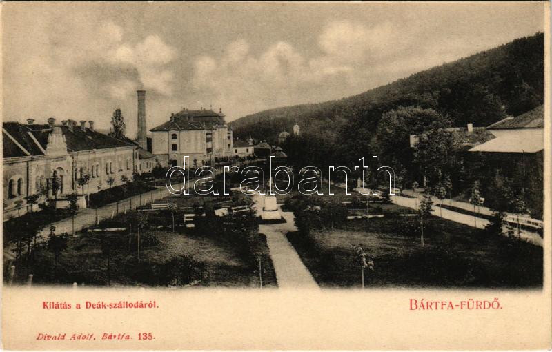 Bártfa, Bártfafürdő, Bardejovské Kúpele, Bardiov, Bardejov; Kilátás a Deák szállodától, ásványfürdők, Erzsébet királyné (Sissi) szobor. Divald Adolf 135. / general view from the hotel, mineral baths, Empress Elisabeth of Austria (Sisi) monument