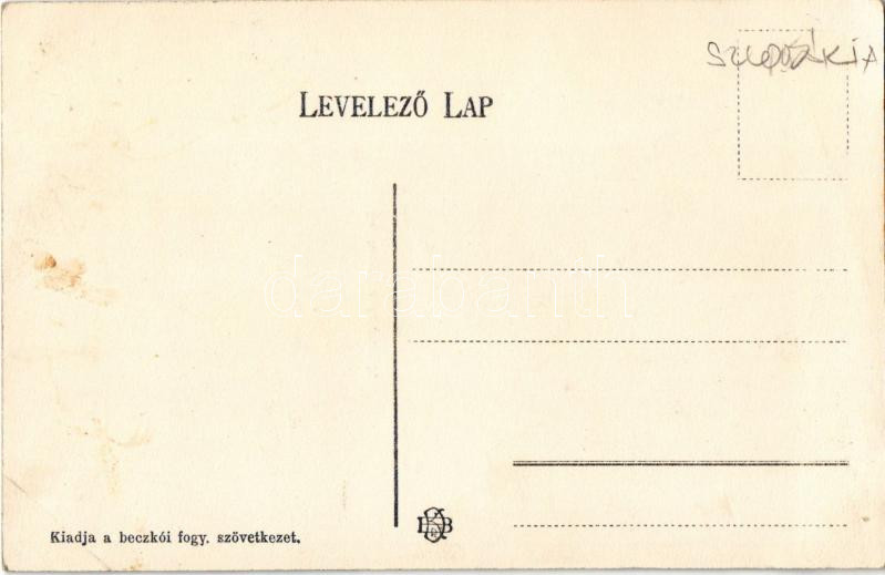 Beckó, Beczkó, Beckov; Evangélikus templom és paplak, vár. Fogyasztási... https://www.darabanth.com/hu/45-Nagyaukcio/45.1/Kepeslapok/Felvidek~18765/Becko-Beczko-Beckov-Evangelikus-templom-es-paplak-var-Fogyasztasi-szovetkezet-kiadasa-~II3448756