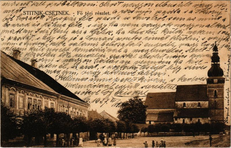Leírás: Csetnek, Stítnik; Fő tér, Evangélikus templom. Julius Lenkeiova kiadása / main square, Lutheran church (EK)