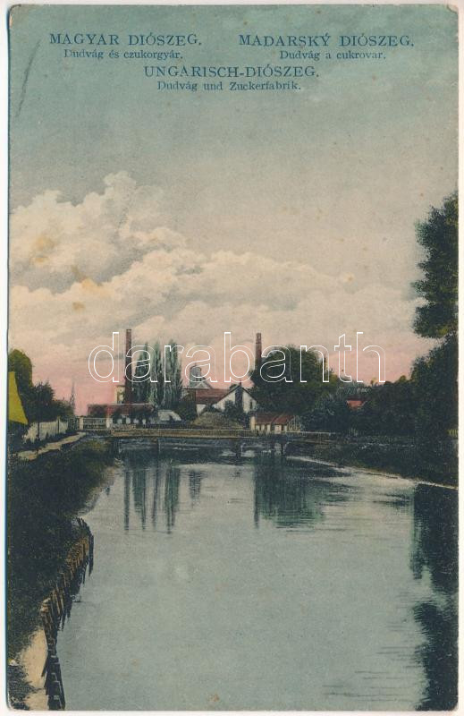 Diószeg, Magyardiószeg, Sládkovicovo; Dudvág és cukorgyár. Karsay József kiadása / Dudvág a cukrovar / Dudvág und Zuckerfabrik / Dudváh riverside and sugar factory (EK)