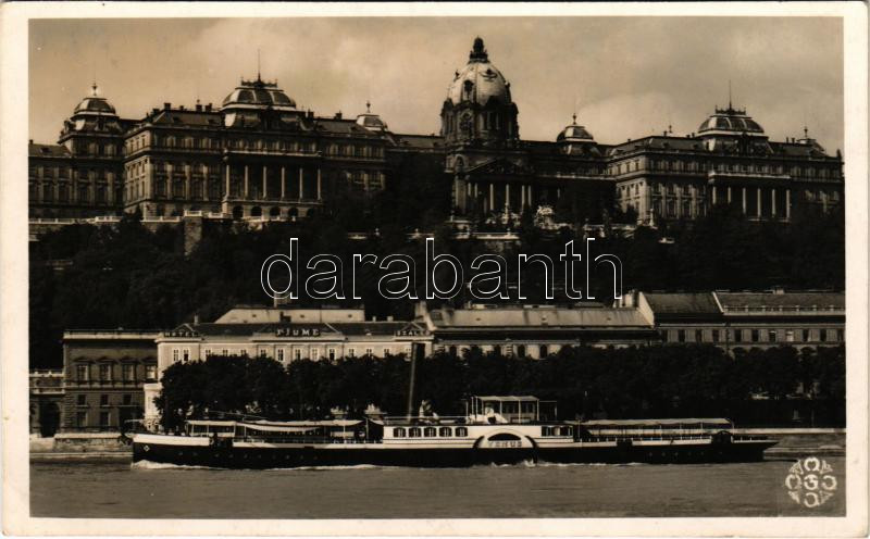 1943 Budapest, Királyi vár, Hotel Fiume szálloda, "VENUS" DGT oldalkerekes gőzhajó / Hungarian sidewheeler passenger steamship by the castle in Budapest. Venus was requisitioned for service on the Danube by the k.u.k. Zentraltransportleitung (ZTL) at some point during the First World War