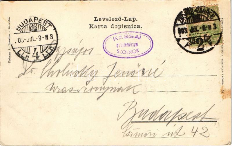 Leírás: 1903 Zagreb, Zágráb; Nadbiskupski dvor / érseki palota. Dr. Cholnoky Jenőnének címezve / archbishop's castle (fl)