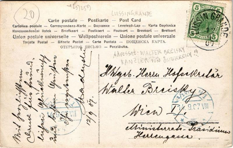 1907 Veli Losinj, Lussingrande; villa. Letter to Walter Breisky (later... https://www.darabanth.com/hu/45-Nagyaukcio/45.1/Kepeslapok/Horvatorszag~18766/1907-Veli-Losinj-Lussingrande-villa-Letter-to-Walter-Breisky-later-Vice-Chancellor-of-Austria-o~II3454262
