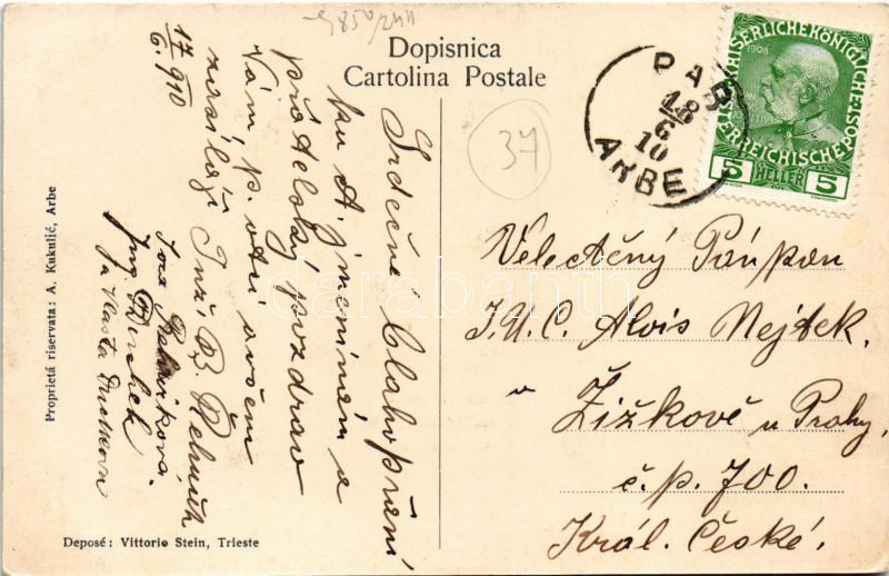 1910 Rab, Arbe; church, courtyard with painter (EK) https://www.darabanth.com/hu/45-Nagyaukcio/45.1/Kepeslapok/Horvatorszag~18766/1910-Rab-Arbe-church-courtyard-with-painter-EK~II3454447