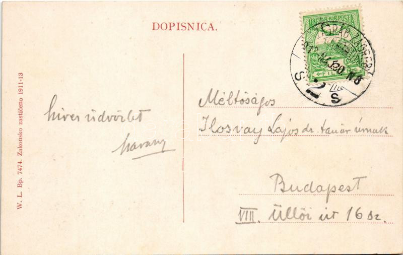 Leírás: 1912 Zagreb, Zágráb; Jelacicev rg / Jellasics tér, villamos, Anker, bank, üzletek. W.L. Bp. 7474. 1911-13. / square, tram, shops, bank (EK)