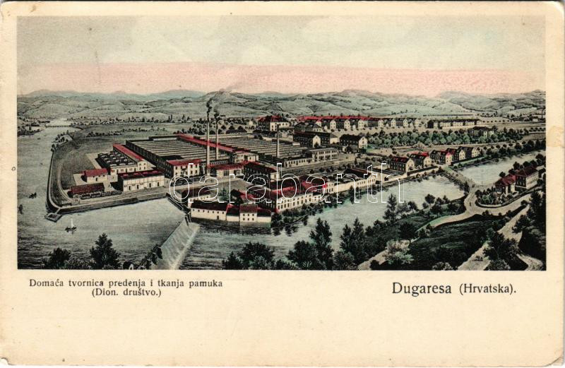 Leírás: 1927 Duga Resa, Dugaresa, Dugerese; Domaca tvornica predenja i tkanja pamuka (Dion. drustvo) / pamutfonó- és szövőgyár / cotton factory (Rb)