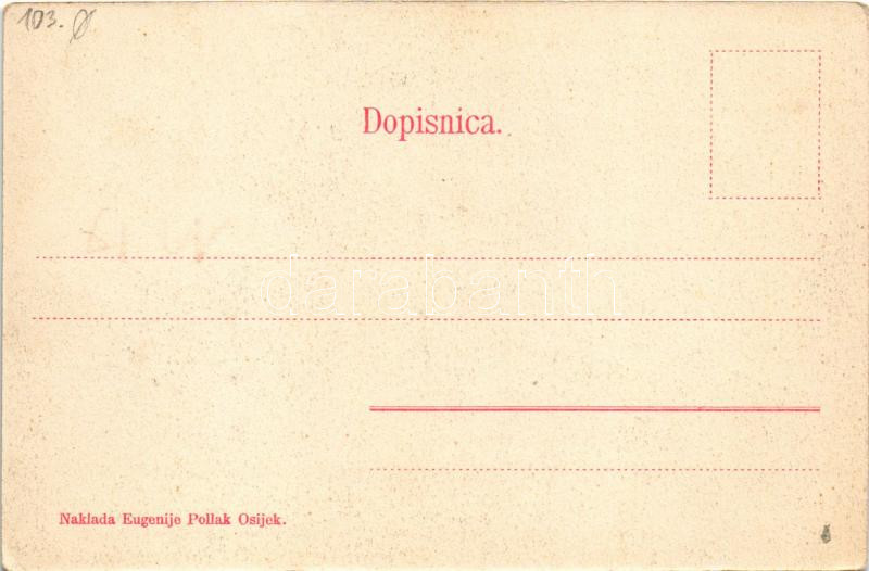 Leírás: Eszék, Essegg, Osijek; Domobranska vojarna. Eugenije Pollak / Honvéd Kaserne / Honvéd laktanya / K.u.K. military barracks (EK)