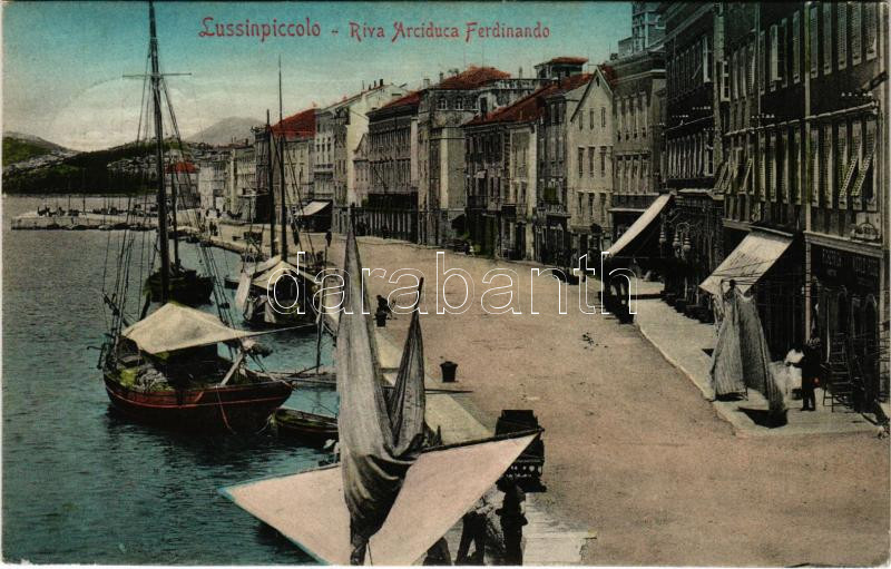 Mali Losinj, Lussinpiccolo; Riva Arciduca Ferdinando / quay, boats, sh... https://www.darabanth.com/hu/45-Nagyaukcio/45.1/Kepeslapok/Horvatorszag~18766/Mali-Losinj-Lussinpiccolo-Riva-Arciduca-Ferdinando-quay-boats-shops-Stengel-amp-Co~II3454196