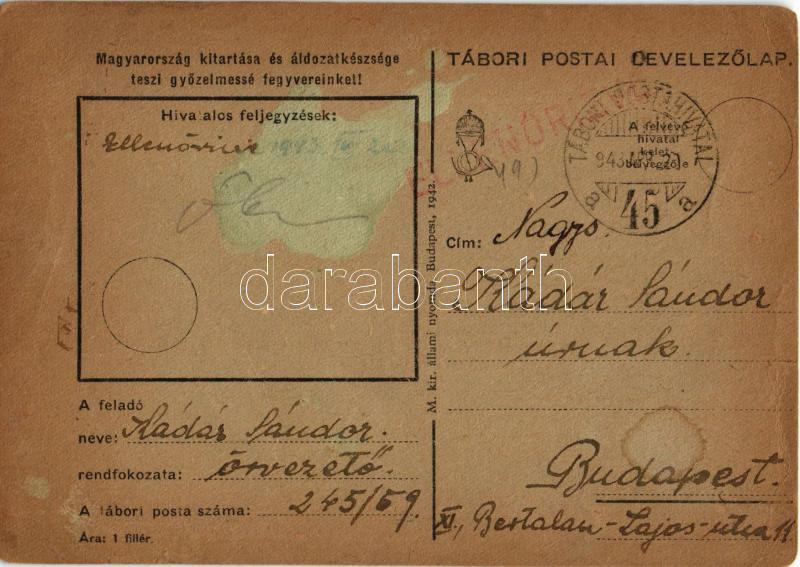 1943 Második világháborús Tábori Postai Levelezőlap, húsvéti üdvözlet ... https://www.darabanth.com/hu/45-Nagyaukcio/45.1/Kepeslapok/Katonai-Repulo~18839/1943-Masodik-vilaghaborus-Tabori-Postai-Levelezolap-husveti-udvozlet-WWII-Hungarian-mil~II3413188
