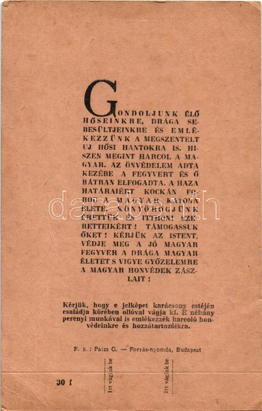 1942 Karácsonya Harcoló honvédeinké és hozzátartozóiké; levente szimbó... https://www.darabanth.com/hu/45-Nagyaukcio/45.1/Kepeslapok/Katonai~18838/1942-Karacsonya-Harcolo-honvedeinke-es-hozzatartozoike-levente-szimbolumokkal-WWII-Hunga~II3455843