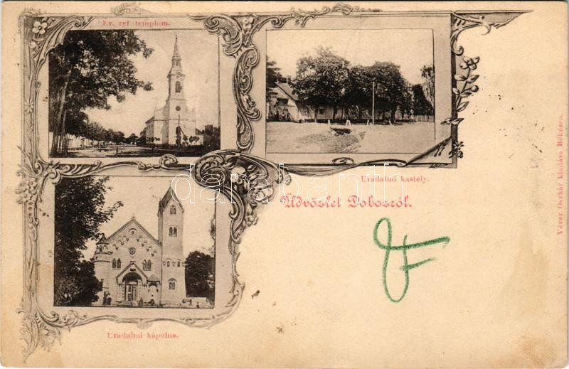 1899 Doboz, Református templom, uradalmi kastély és kápolna. Véver Osz... https://www.darabanth.com/hu/45-Nagyaukcio/45.1/Kepeslapok/Magyarorszag~18763/1899-Doboz-Reformatus-templom-uradalmi-kastely-es-kapolna-Vever-Oszkar-kiadasa-Art-Nouvea~II3420927
