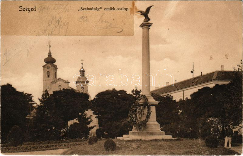 1904 Szeged, A régi belváros, Szabadság emlékoszlop (EK) https://www.darabanth.com/hu/45-Nagyaukcio/45.1/Kepeslapok/Magyarorszag~18763/1904-Szeged-A-regi-belvaros-Szabadsag-emlekoszlop-EK~II3449391