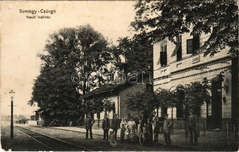 Leírás: 1909 Csurgó, Somogycsurgó; Vasúti indóház, vasútállomás. Szűcs Béla kiadása (EM)