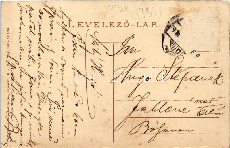 Leírás: 1916 Kaposvár, Korona utca, Korona szálloda, Gulyás Gyula, Krausz Géza üzlete. Hirsch Zsigmond kiadása (b)
