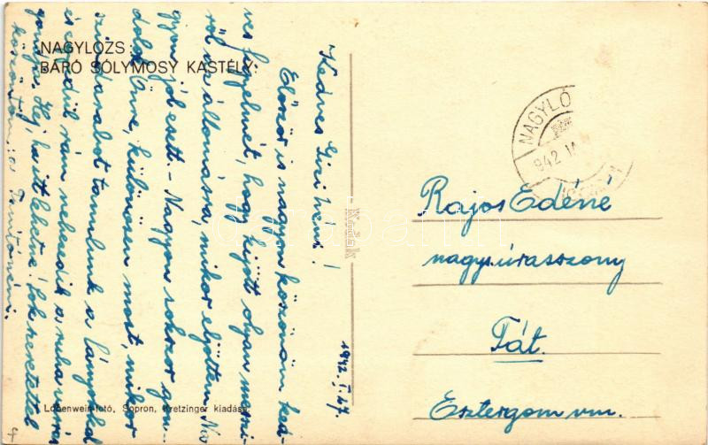 1942 Nagylózs, Lózs (Sopron megye); Báró Solymossy (Solymosy) Ödön kas... https://www.darabanth.com/hu/45-Nagyaukcio/45.1/Kepeslapok/Magyarorszag~18763/1942-Nagylozs-Lozs-Sopron-megye-Baro-Solymossy-Solymosy-Odon-kastelya-Lobenwein-foto-~II3421710