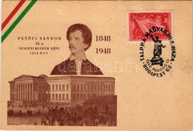 1948 Budapest VIII. Petőfi Sándor és a Nemzeti Múzeum képe 1848-ban. T... https://www.darabanth.com/hu/45-Nagyaukcio/45.1/Kepeslapok/Magyarorszag~18763/1948-Budapest-VIII-Petofi-Sandor-es-a-Nemzeti-Muzeum-kepe-1848-ban-TCV-card-non-PC-plus-Talpr~II3413768