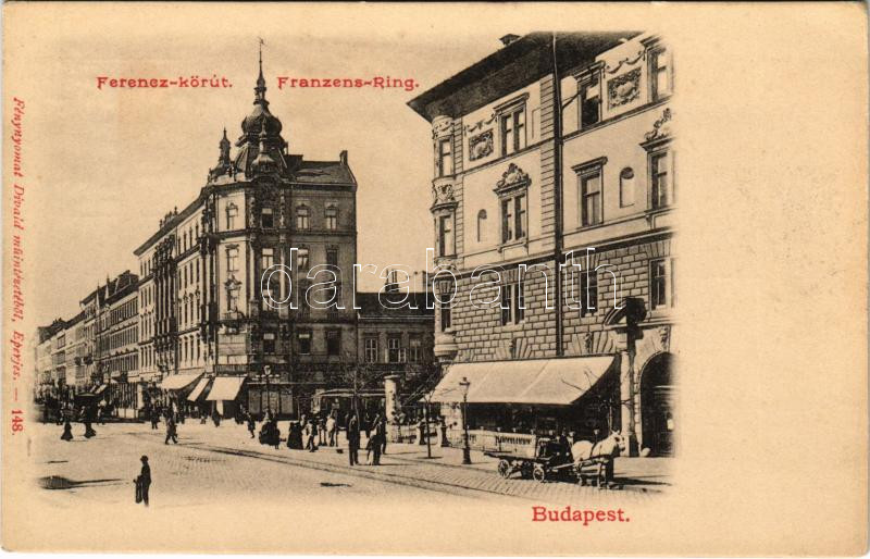Leírás: Budapest IX. Ferenc körút és Üllői út sarok, Valéria kávéház, a tornyos ház már nincs meg. Divald 148. (fl)